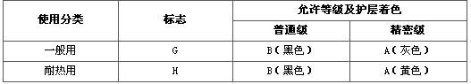 高溫硅橡膠補(bǔ)償導(dǎo)線使用分類、允許等級(jí)、護(hù)層著色標(biāo)志: